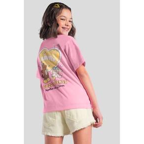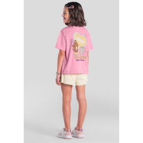 Essa blusa infantil para menina é confeccionada em meia malha macia e traz estampa de ursinho Sweet Goods frontal e nas costas, garantindo um visual divertido e atual. Com modelagem oversized, gola redonda e mangas curtas, é a escolha perfeita para produções casuais com um toque de tendência. Versátil e prática, combina facilmente com diferentes peças do guarda