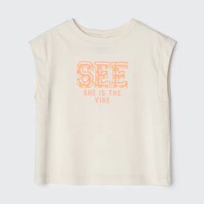 Características da peça: Malha de algodão Manga curta Decote redondo Detalhe na estampa frontal Estampa localizada "See She Is the Vibe" (Tradução: Olhe, ela é a vibe)