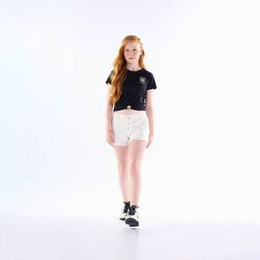 Blusa tendência e indispensável no guarda-roupa das fashionistas. Confeccionada em meia malha na cor preta, possuí leveza para aproveitar cada momento, aplique bordado de flor e detalhe "piercing" próximo a barra deixando a peça ainda mais fashionista.