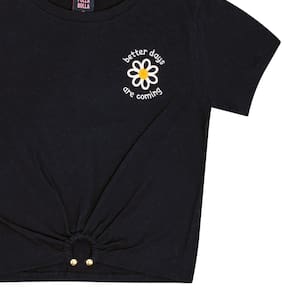 Blusa tendência e indispensável no guarda-roupa das fashionistas. Confeccionada em meia malha na cor preta, possuí leveza para aproveitar cada momento, aplique bordado de flor e detalhe "piercing" próximo a barra deixando a peça ainda mais fashionista.
