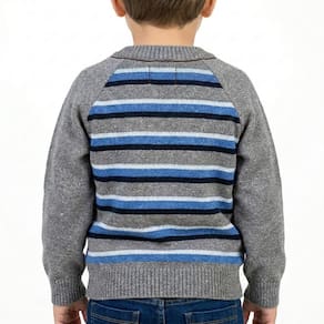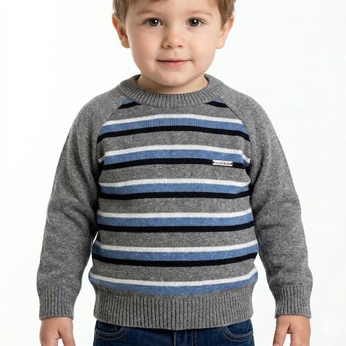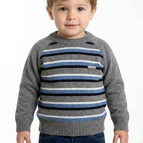 Blusa Listrada Tricô Kids Manga Raglan feito em tecido algodão e acrílico, gola redonda, detalhe Tricô Kids em metal no peito, manga longa e etiquetas personalizadas.