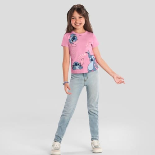 Deixe a imaginação da sua pequena voar para fora deste planeta com a blusa infantil para meninas do Stitch da Brandili! Confeccionada em malha macia com manga curta e gola redonda, ela oferece o máximo de conforto para que sua pequena possa viver suas próprias aventuras alienígenas. A estampa colorida do Stitch, acompanhada de escritas e detalhes em glitter, traz um brilho extra, deixando a peça ainda mais encantadora e cheia de personalidade. Com sua energia única, vai fazer com que sua pequena se destaque com muito estilo, perfeita para momentos de diversão. Essa blusa é ideal para combinar com jeans, saias ou leggings, criando looks que são um verdadeiro sucesso. Aposte nessa peça para o guarda-roupa de sua pequena