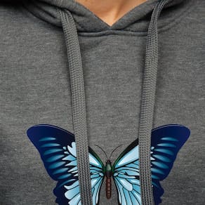 Blusa Moletom Canguru Feminino Com Capuz - Grafite - Borboleta Azul - Grafite - GG