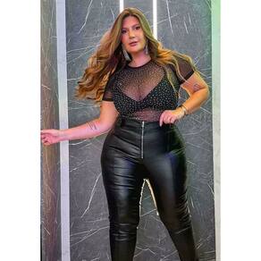 Blusa Plus Size Em Tule Hotfix E Top Aposte na elegância com nossa blusa manga curta plus size em tule hotfix. Confeccionada com 95% Poliéster e 5% Elástano, esta peça oferece um ajuste perfeito e muito conforto. A transparência do tule é adornada com detalhes em hotfix, proporcionando um brilho sutil e sofisticado, ideal para ocasiões especiais. As mangas curtas em tule adicionam um toque delicado e feminino, enquanto o top de alças finas, feito de 100% Poliéster, completa o visual com conforto e harmonia. Disponível na cor preto, esta blusa é extremamente versátil, combinando facilmente com saias, calças ou shorts para criar looks elegantes para diversas ocasiões. Garante um ajuste confortável para mulheres plus size. Transforme seu visual com nossa blusa manga curta plus size em tule hotfix e adicione um toque de sofisticação ao seu guarda-roupa. Compre agora e destaque-se com elegância e estilo em qualquer ocasião.