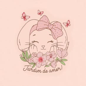 Blusinha ideal para os passeios mais divertidos da estação! Confeccionada em tecido meia malha a blusinha possuí estampa frontal de coelhinha na cor rosa pó com flores e escrita "Jardim do amor", ótimo para combinar com short, saia ou legging e aproveitar o dia com a priminha.