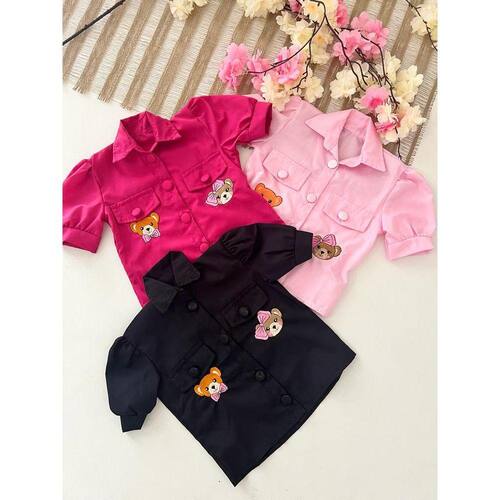 Blusa infantil feminino social manga princesa, bordado realista ursinho, fechamento em botões, deixando o look perfeito, super divertido, uma fofura, sua princesa vai ficar apaixonada.