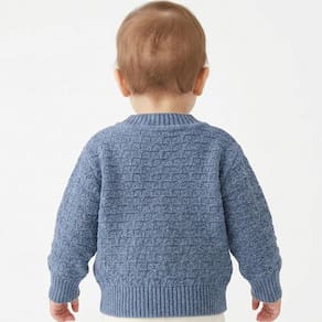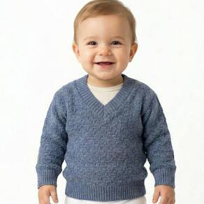 Blusa Trabalhada Tricô Kids Decote V feito em tecido algodão e acrílico, gola em V, estampa quadriculada, manga longa e etiquetas personalizadas.