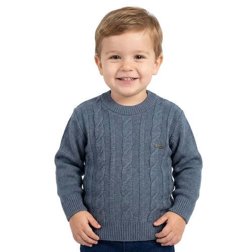 Blusa Trançada Tricô Kids feito em tecido acrílico, gola redonda, estampa Tricô Kids na lateral do peito, manga longa e etiquetas personalizadas.