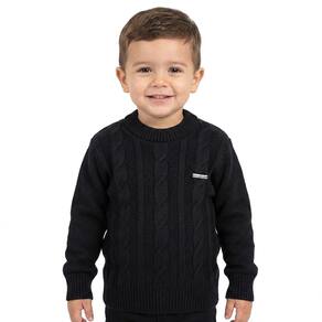 Blusa Trançada Tricô Kids feito em tecido acrílico, gola redonda, estampa Tricô Kids na lateral do peito, manga longa e etiquetas personalizadas.