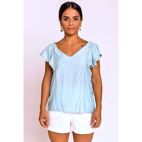 Blusa Viscolinho Babados nas Magas, possui babados e detalhes de entremeios nas mangas e extensão dos ombros, gola em V. É uma peça delicada e sofisticada, os babados deixam a peça elegante e perfeita para compor looks mais femininos e refinados. Código do produto: T0760