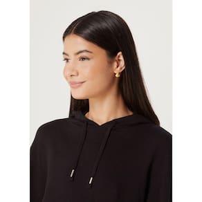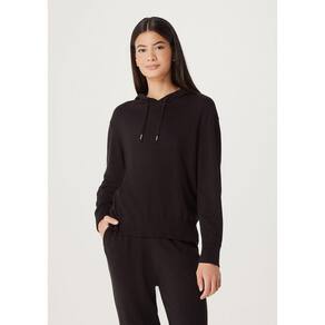 Blusão Feminino Básico Com Capuz Em Tricô. Confecionado em tricô leve e confortável, essa peça é ideal para os dias mais amenos da estação. Ele conta com capuz e cordão para ajuste, detalhe de fenda na lateral e barra detalhada, sua modelagem é mais reta ao corpo sem ajustar. Aposte nesta