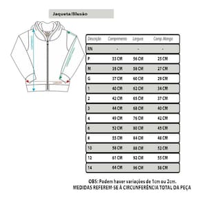 Tam.: 06 > Busto/Tórax: 80cm/ Compr.: 52cm/ Comp. Manga: 45cm