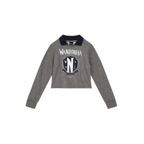 Blusão infantil menina confeccionado em moletom com pelúcia interna, a peça conta com estampa frontal relevo da Wandinha, mangas longas com punhos ajustados e detalhe de gola em cor contrastante. Esta peça oferece não apenas estilo, mas também uma sensação aconchegante, perfeita para as amantes dessa super personagem. Aposte!