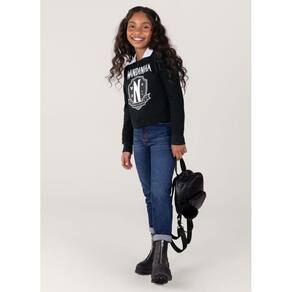 Blusão Moletom Wandinha Infantil Menina Brandili Preto - Preto - 8