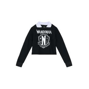 Blusão infantil menina confeccionado em moletom com pelúcia interna, a peça conta com estampa frontal relevo da Wandinha, mangas longas com punhos ajustados e detalhe de gola em cor contrastante. Esta peça oferece não apenas estilo, mas também uma sensação aconchegante, perfeita para as amantes dessa super personagem. Aposte!