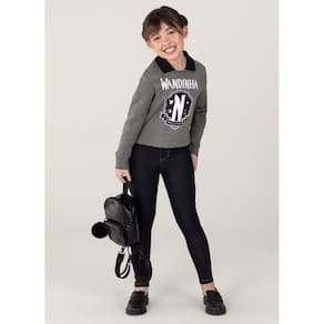 Blusão infantil menina confeccionado em moletom com pelúcia interna, a peça conta com estampa frontal relevo da Wandinha, mangas longas com punhos ajustados e detalhe de gola em cor contrastante. Esta peça oferece não apenas estilo, mas também uma sensação aconchegante, perfeita para as amantes dessa super personagem. Aposte!