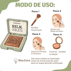 Luminosidade natural, cor radiante e acabamento acetinado em um só produto! O Blush Baked Mosaico Marble Bloom Pure da Ruby Rose é a combinação perfeita entre sofisticação e versatilidade. Com um design marmorizado elegante e fórmula baked (assada), ele entrega um toque de cor suave com efeito glow natural, sem pesar na pele. A cor Pure é um tom pêssego-dourado delicado, ideal para criar aquele efeito pele beijada pelo sol", com um acabamento acetinado que valoriza todos os tons de pele. Sua textura fina e ultraleve proporciona um esfumado fácil, uniforme e sem marcas.