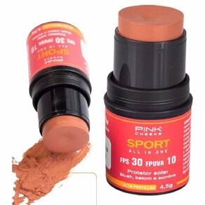 DESCRIÇÃO:Blush com Protetor Solar FPS 30 FPUVA 10 All in One Pink Cheeks 4,5gAlta proteção, tratamento, beleza e praticidade, tudo junto e ao mesmo tempo. Nosso blush com protetor solar FPS 30 e FPUVA 10 tem formato bastão. Aliás, versátil e multifuncional, pode ser utilizado como blush, batom, e/ou sombra. Sua textura cremosa e confortável é facinha de espalhar. Com sensorial leve e sedoso e de rápida absorção, não deixa residual oleoso sobre a pele. E tem mais! Resistente à água e ao suor, não escorre e não borra, garantindo a proteção UV e hidratação por tempo prolongado. E permite, com cobertura construtível, de média a alta, efeito de pele saudável para seu rosto. Apresenta 2 cores que se adaptam aos diferentes tons de pele, viu? Sua fórmula é enriquecida com vitamina E, que confere hidratação e combate os radicais livres.