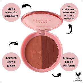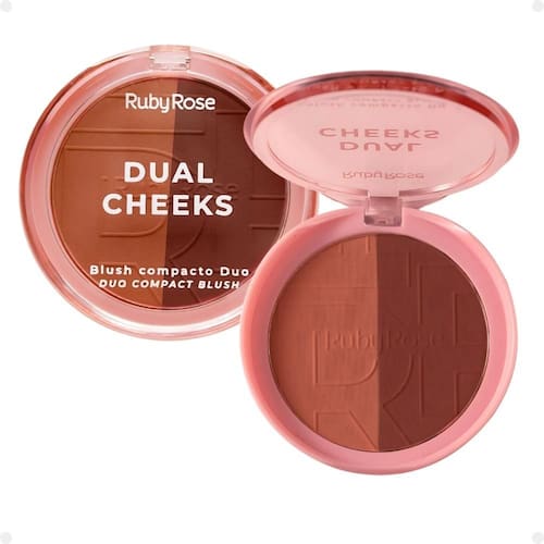 O Blush Compacto Duo Ruby Rose Dual Cheeks é um produto versátil que combina duas tonalidades complementares, permitindo criar um efeito de contorno e iluminação nas maçãs do rosto. Com uma textura leve e macia, ele garante uma aplicação fácil e uniforme, aderindo bem à pele para um efeito natural e duradouro.