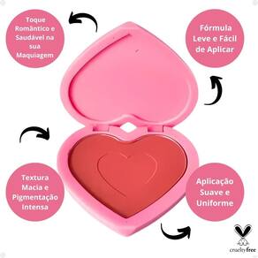 Com um encantador formato de coração, este Blush é a escolha ideal para quem busca um toque romântico e saudável na maquiagem. Sua fórmula leve e fácil de aplicar proporciona uma textura macia e pigmentação intensa, permitindo uma aplicação suave e uniforme.