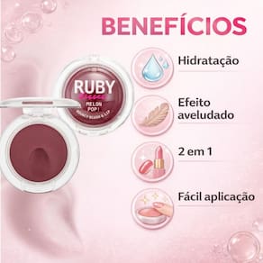 O Blush e Lip Bouncy Ruby Kisses Melon Pop! é perfeito para o dia a dia, adicionando um toque de cor natural e saudável. É ideal para criar looks rápidos e práticos, seja para o trabalho, encontros casuais ou eventos especiais. Sua longa duração o torna um aliado para qualquer ocasião, mantendo sua maquiagem impecável por mais tempo.