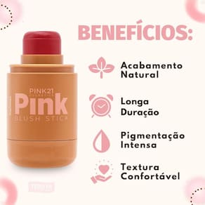 Para aplicar, deslize o Blush em Stick Pink 21 Cor 03 CS5658 diretamente sobre as maçãs do rosto.