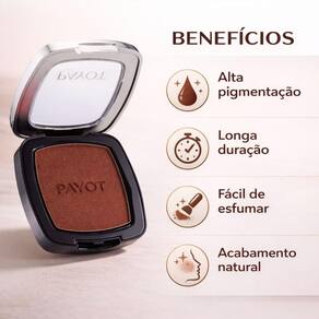 Com um pincel de blush macio, retire uma pequena quantidade de Blush Payot Retinol Marrom Apimentado. Aplique nas maçãs do rosto, em direção às têmporas, com movimentos suaves e circulares. Construa a intensidade da cor gradualmente, adicionando mais produto se desejar um visual mais dramático. Para um efeito mais natural, esfume bem as bordas do blush, integrando-o à sua maquiagem. Dica: Sorria ao aplicar o blush para identificar o ponto mais alto das maçãs do rosto e garantir uma aplicação perfeita.