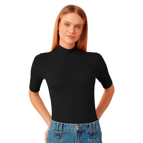 Tecido: Malha canelada de viscose com elastano, com conforto e toque suave do algodão. Fabricado com fios Premium, oferecendo maciez, flexibilidade e elasticidade, garantindo um ajuste perfeito ao corpo.