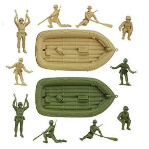 Da CLÁSSICA SÉRIE DE COLECIONADORES DO ARMY MEN, a BMC Toys traz de volta um conjunto icônico de figuras da Era de Ouro dos Playsets Homens do Exército. Este pacote de 24 Olive Drab e Tan WW2 US Soldier PLASTIC ARMY MEN é orgulhosamente fabricado nos Estados Unidos e apresenta 5 figuras e jangadas diferentes. As tropas têm aproximadamente 1:32 de escala, têm até 2,1 polegadas de altura, e são feitas de bronzeado flexível e plástico LDPE de cor verde de oliva com bons detalhes e um pouco piscando. Cada cor inclui 4 fuzileiros sentados, 4 remadores, 2 Landing Craft Rubber Boat (LCR), 2 Paraquedistas em 2 poses, e instruções para facilitar a fazer paraquedas de guardanapos de papel e linha. A balsa mede 5,5 polegadas de comprimento, é oca por baixo, e até flutua na água. Estas figuras foram mente produzidas por volta de 1960 pela Louis Marx & Company e foram incluídas em muitos de seus famosos Battleground e History in the Pacific Playsets. Eles também foram oferecidos em playsets por várias empresas através das décadas de 1980 e 1990, e mais tarde produzidos em plástico duro para o mercado de hobby. Estas são excelentes tropas para uma variedade de configurações desde a 2ª Guerra Mundial até os conflitos da Guerra Fria. Este é um conjunto de verdadeiros heróis de plástico americanos, destinados a serem criados, derrubados, pegos e jogados por muitos anos. PEQUENOS HOMENS DO EXÉRCITO VERDE foram até introduzidos no Hall da Fama do Brinquedo Nacional. Embalado em saco plástico com cartão de inserção e recomendado para maiores de 5 anos.