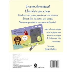 Boa noite, dorminhocos! É hora de ir para a cama. O Cachorro está pronto para dormir, mas primeiro ele quer dizer boa noite a seus amigos. Você consegue ajudá-lo a encontrar todos eles? Insira a lanterna mágica entre as páginas para encontrar os amigos do Cachorro em cada cena noturna. Ean: 9788550704067