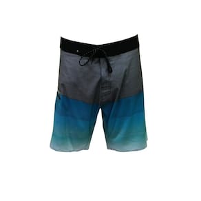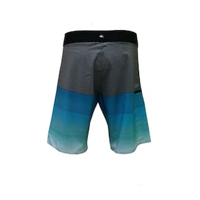 Boardshorts regular, tecido de poliéster com elastano estampado, tecido com 4Way, elasticidade para 4 lados, cós duplo do contrastante próprio tecido, cordão chato especial, bolso chapado traseiro com lapela e fita dupla aderente. Etiqueta aplicada na perna esquerda, tecido telado no interno do bolso com aplicação de elástico para chaves e etiquetas personalizadas.
