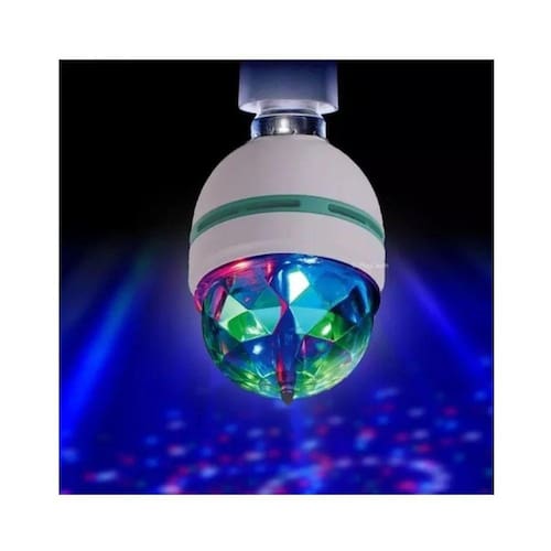 Ampola giratória LED Esta ampola, você pode usá-la em eventos, bobinas, discos, barras, aniversário - potência de saída de bola giratória RGB de 1,5 ~ 3W Sistema de rosca de parafuso Ampuleta AC E27 - Tensão 85-265 V Vida útil de 20000 horas - Material plástico e blister de metal Tamanho 15 cm x 8 cm x 8 cm - Mini disco esférico - Economia de energia 80% -LED 3W
