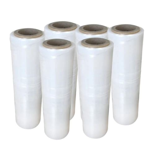 Kit 6 bobina filme película pe stretch manual transparente 500 x 0,025 cada bobina pesando 3,900 a 4,100 kilograma com tubo papelão