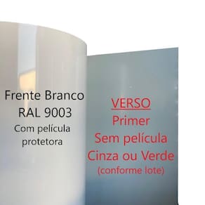 Bobina Pintada Branca 60cm x 2mts Calha Rufo Pingadeira Chapa em bobina com pintura eletrostática brancaUtilização: Calhas, Rufos, Artesanato, Placas, Quadros para imã.Material: Aço Pintado (Eletrostático)Cor: BrancoEspessura: 0,40mmLargura x Comprimento: conforme títuloObservação: Frente pintado de branco com película protetora, o outro lado é só zarcão sem película. Marca: Cadimetal