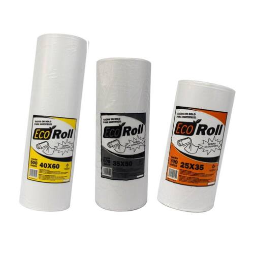 Bobina picotada fundo reto Eco-Roll Extra Forte fabricada com matéria prima virgem, utilizada em açougues, padarias, mercearias, agropecuária etc. Pode ser utilizada também no uso doméstico no armazenamento de alimentos entre outras utilidades. Produto de qualidade e com grande benefício para seu comércio.