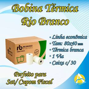 A bobina térmica Rio Branco 80x40 é um rolo de papel térmico utilizado em impressoras de recibos e cupons fiscais, geralmente encontrado em pontos de venda (PDVs), caixas registradoras e máquinas de pagamento de cartão. Aqui estão os detalhes principais da bobina: