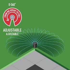 - O bico de pulverização de padrão ajustável permite ajuste de arco de 0 a 360 graus; projetado para que as taxas de precipitação sejam compatíveis com bicos de padrão fixo