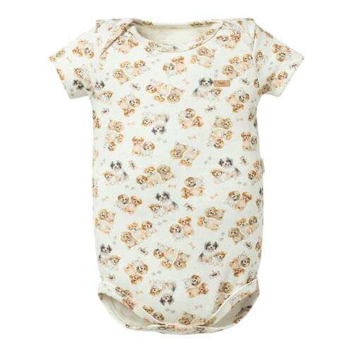 Body Bebê Curto Menino Estampado Bege Doguinhos - Hug - G - Bege