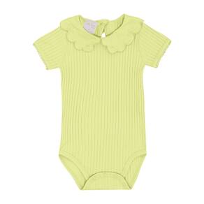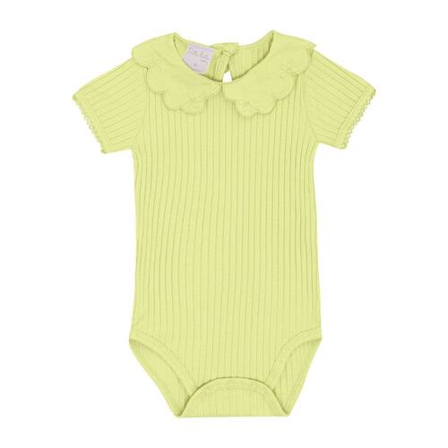 Body manga curta confeccionado em malha canelada na cor lima, a malha tendência para as meninas também chegou para as babys fashionistas com detalhe de babado na gola, possuí abertura de botões entre as pernas e para facilitar a vestimenta também possuí abertura nas costas com botão. Sua fashionista vai encantar a todos no dia a dia!