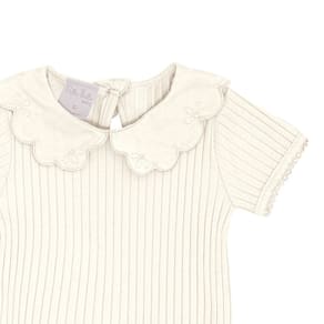 Body manga curta confeccionado em malha canelada na cor off white, a malha tendência para as meninas também chegou para as babys fashionistas com detalhe de babado na gola, possuí abertura de botões entre as pernas e para facilitar a vestimenta também possuí abertura nas costas com botão. Sua fashionista vai encantar a todos no dia a dia!