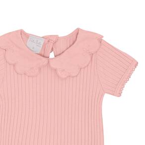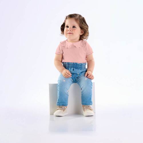 Body manga curta confeccionado em malha canelada na cor rose, a malha tendência para as meninas também chegou para as babys fashionistas com detalhe de babado na gola, possuí abertura de botões entre as pernas e para facilitar a vestimenta também possuí abertura nas costas com botão. Sua fashionista vai encantar a todos no dia a dia!