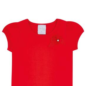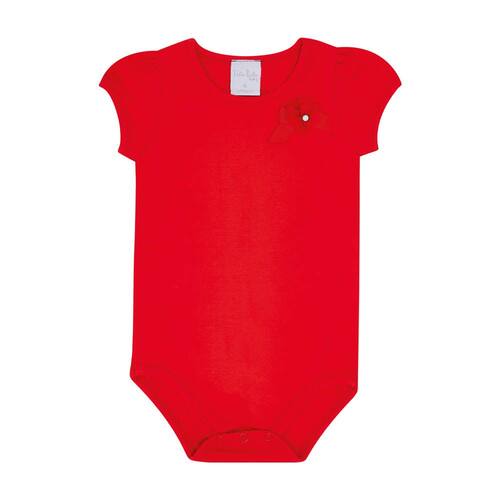 Body manga curta confeccionado em cotton leve trabalhado na cor Vermelho, com aplique de laço e botões facilitando a troca da peça em qualquer ocasião.