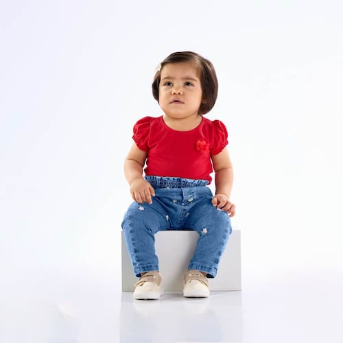 Body manga curta confeccionado em cotton leve na cor vermelho, a fofura da peça deixamos para seu aplique de flor localizado ao lado esquerdo na parte da frente da peça, com mangas que possuem elastano na barra e abertura entre as pernas com botões facilitando a troca da peça em qualquer ocasião.