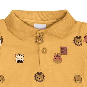 Look ideal para um dia de passeio com o vovó! Com o body suedine na cor ocre, além de charmoso seu baby estará confortável e seguro durante o dia, com abertura de botões entre as pernas facilitando a troca e os movimentos, o look também possuí estampa de animais como zebra, urso e leão por toda peça.