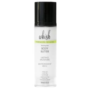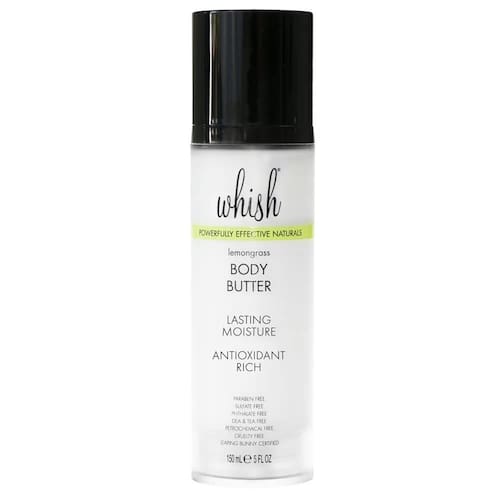 Whish Beauty Body Butter para mulheres – Loção corporal hidratante para pele seca – rica em antioxidantes com manteiga de karité, Aloe e manteiga de framboesa – Sem parabenos e sulfatos – capim-limão – 150 ml