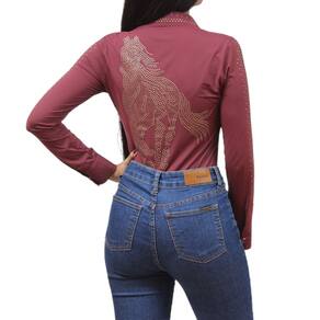 Body Feminino da marca Os Vaqueiros com manga longa é uma peça essencial para mulheres que buscam conforto e estilo durante atividades ao ar livre. Confeccionado com materiais de alta qualidade, esta peça oferece excelente resistência e durabilidade. A manga longa oferece ainda mais proteção, cobrindo os braços e minimizando a exposição da pele ao sol. O design do produto é chamativo, moderno e único, fechamento em botão, pedrinhas por toda a peça que destacam a personalidade de quem usa focando principalmente na arte do cavalo na parte das costas. A peça é leve e confortável, proporcionando grande liberdade de movimento durante as atividades físicas. Além disso, é fácil de cuidar e de lavar, tornando-se uma excelente opção para mulheres que levam uma vida agitada e precisam de peças práticas e versáteis.