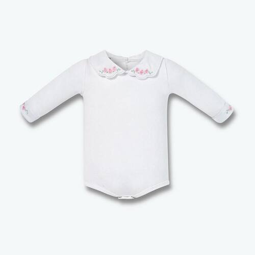 Body Longo Hug Com Gola Bordada Flores Branco - P - Branco