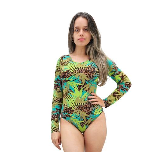 Maiô feminino fechado sem bojo com manga longa