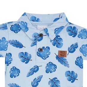 Ah! O frescor da primavera chegou! Confeccionado em tecido meia malha, este body na cor nuvem conta com uma estampa de folhas tropicais, possui também um aplique de termocolante com identificação Pulla Bulla e botões na gola. Para facilitar o dia a dia das mamães esta peça possuí abotoamento entre as pernas. Um verdadeiro charme para se manter fresquinho nos dias quentes!