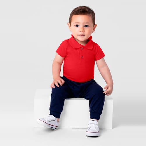 Dê um toque de charme ao guarda-roupa do seu bebê com o Body Polo Bebê Menino da Brandili!